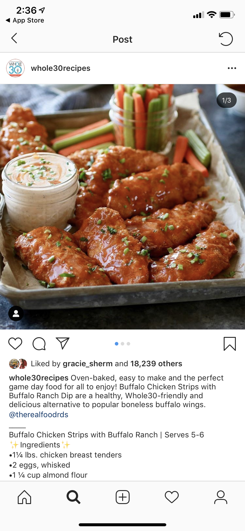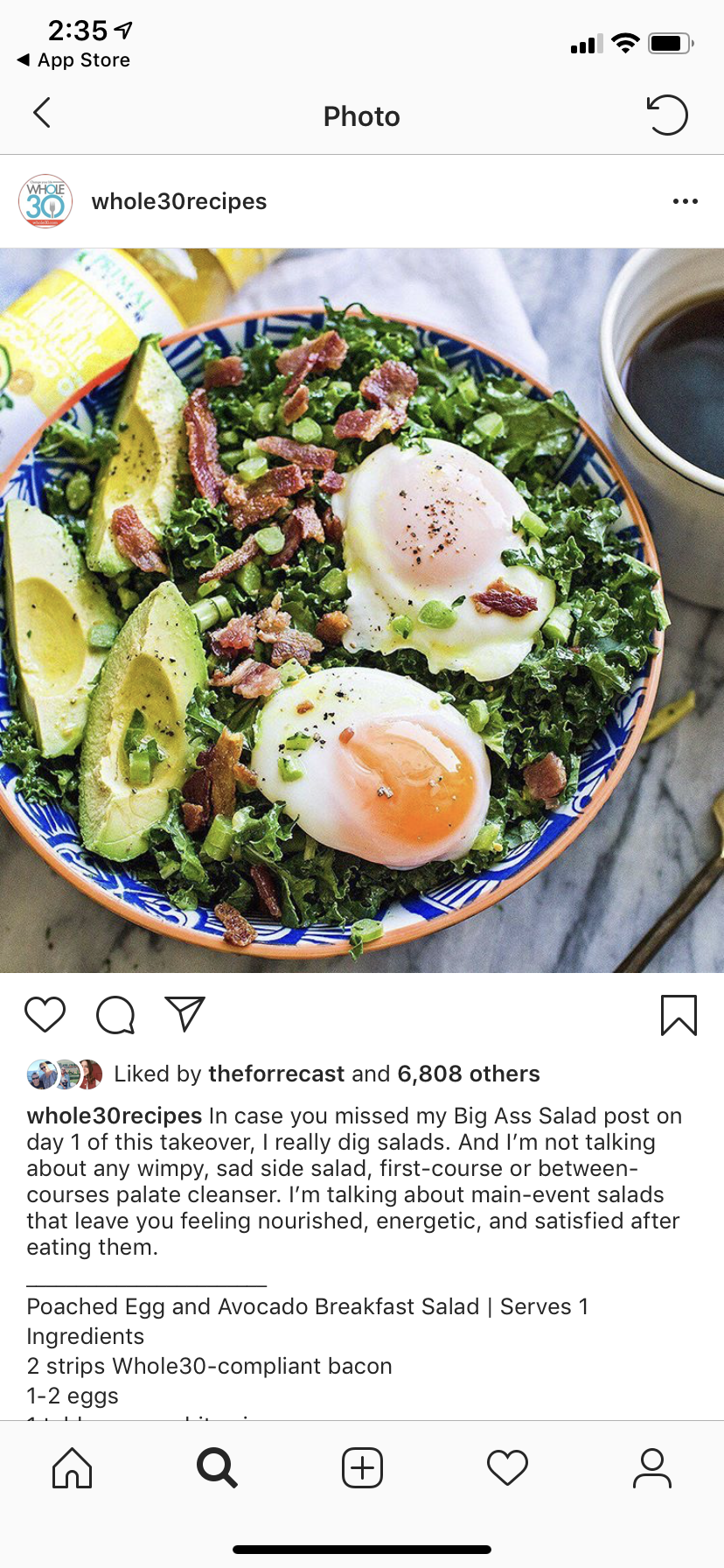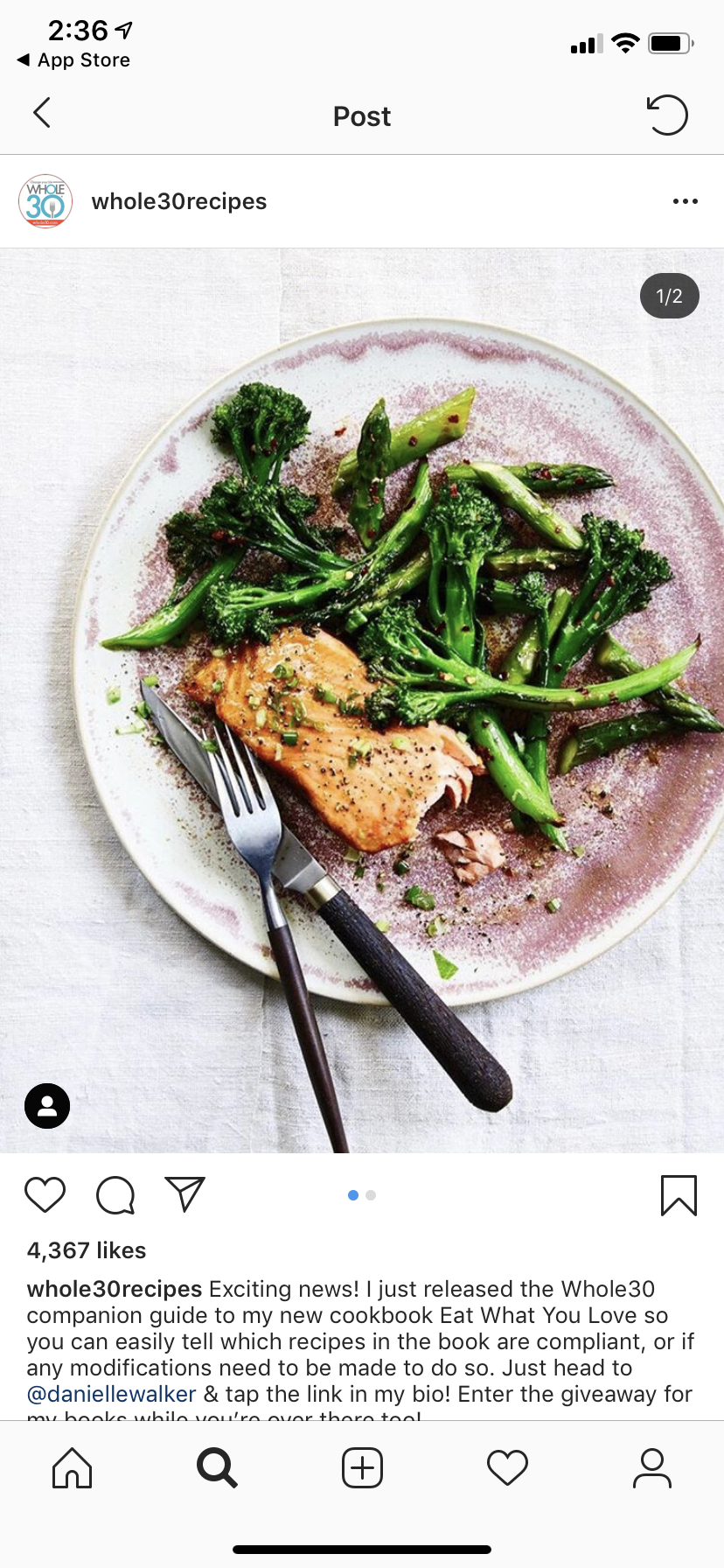 What has been most helpful for figuring out what to eat every day has been the Whole 30 official recipe Instagram page. They have so many ideas that make cooking easier and it still tastes good. They do a great of job of capturing food that looks appetizing even if you are sacrificing some of your favorite items, like cheese! I can not wait until January is over so that I can eat cheese again. Here are a few of my favorite posts from the last few weeks.