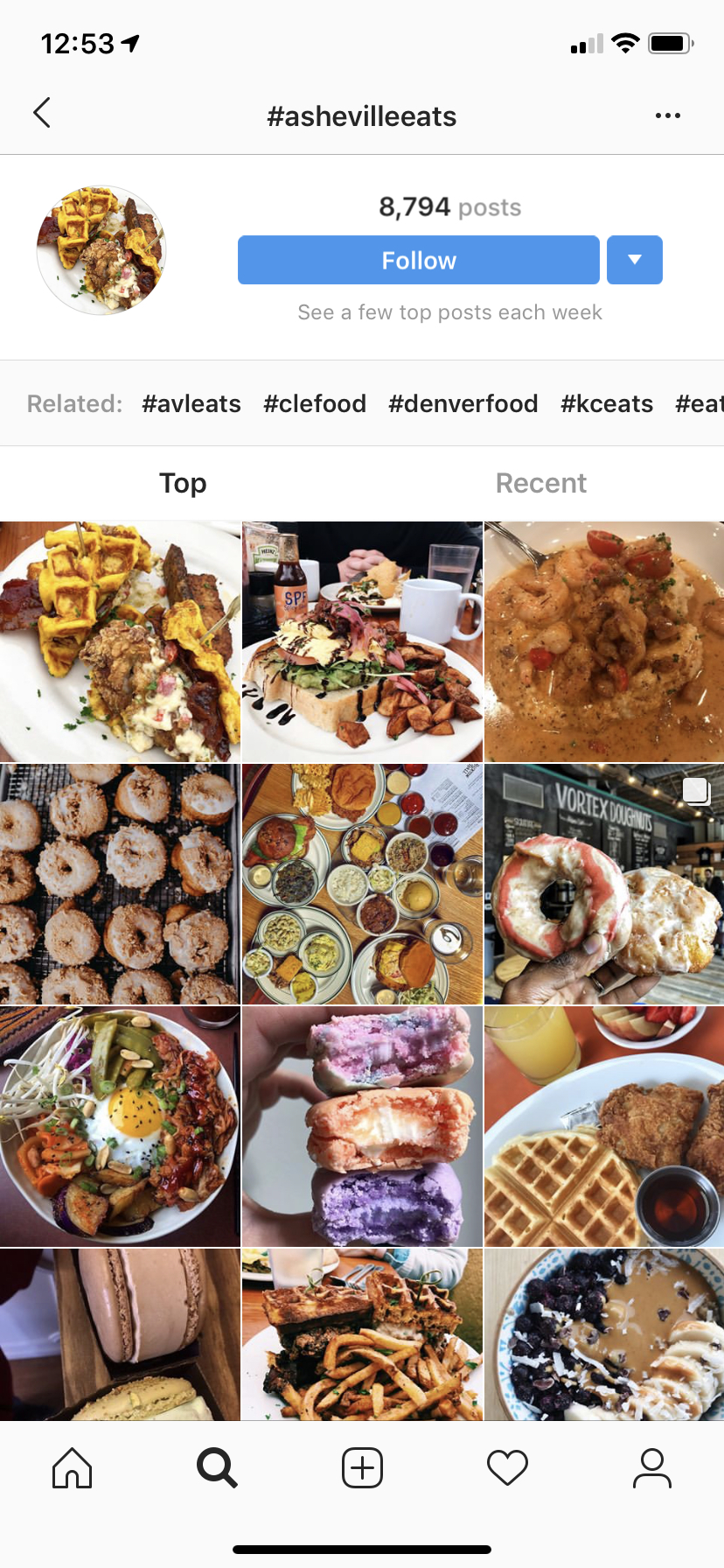 I was in charge of deciding where we should eat for lunch. Picking a restaurant for 6 girls is a difficult task. Not everyone is going to like the same things. I was looking for a classic Asheville restaurant that would satisfy my cravings for a carb-loaded meal. Instead of walking around for hours looking for a restaurant, I decided to search with the hashtag #ashevilleeats on Instagram.
