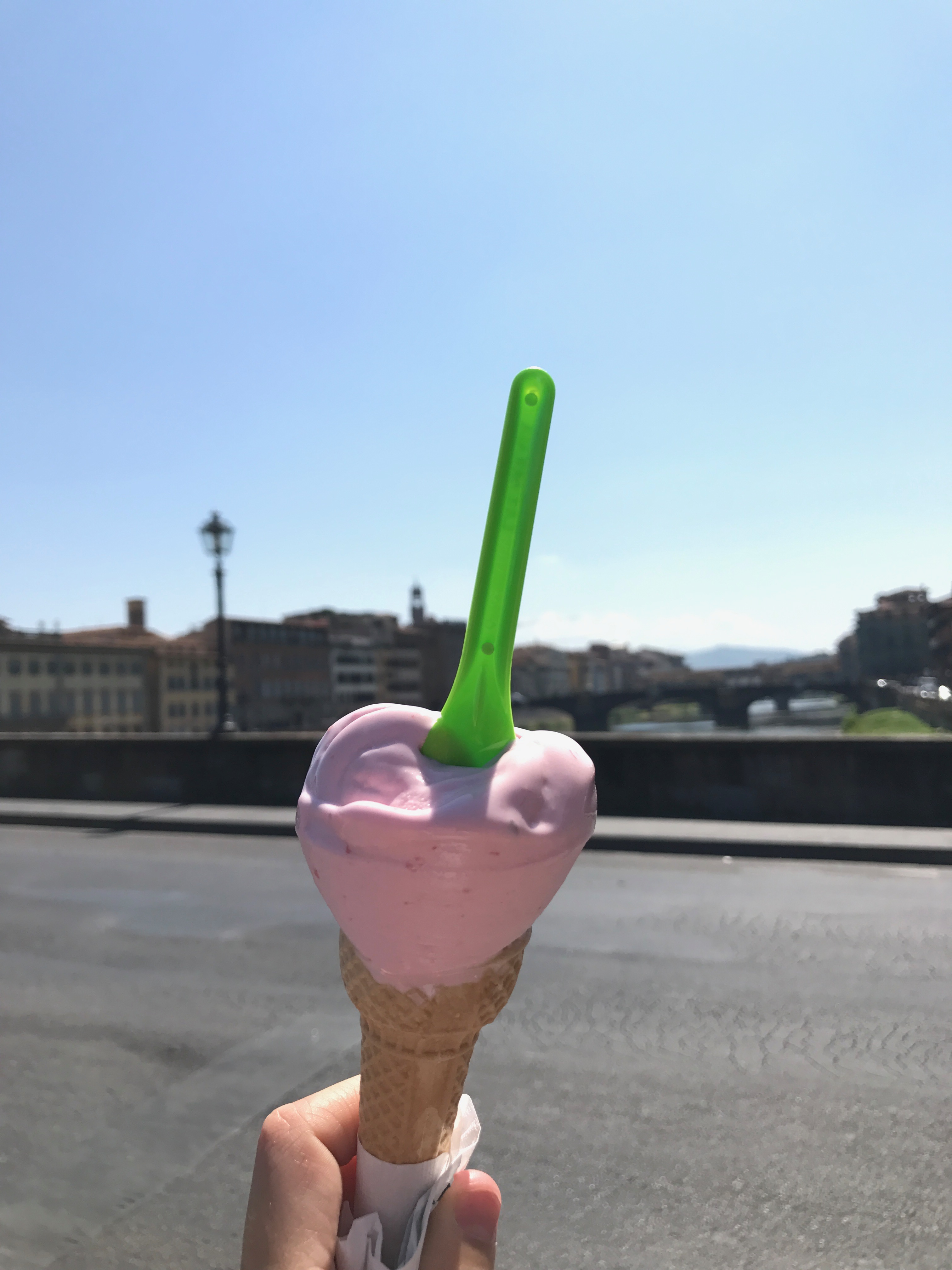 Out of all the gelato shops in Florence, the best one is Gelateria Santa Trinita. They have the best flavors, but also the creamiest gelato. You can order your gelato then walk across the bridge to enjoy a nice beautiful view of the river.
